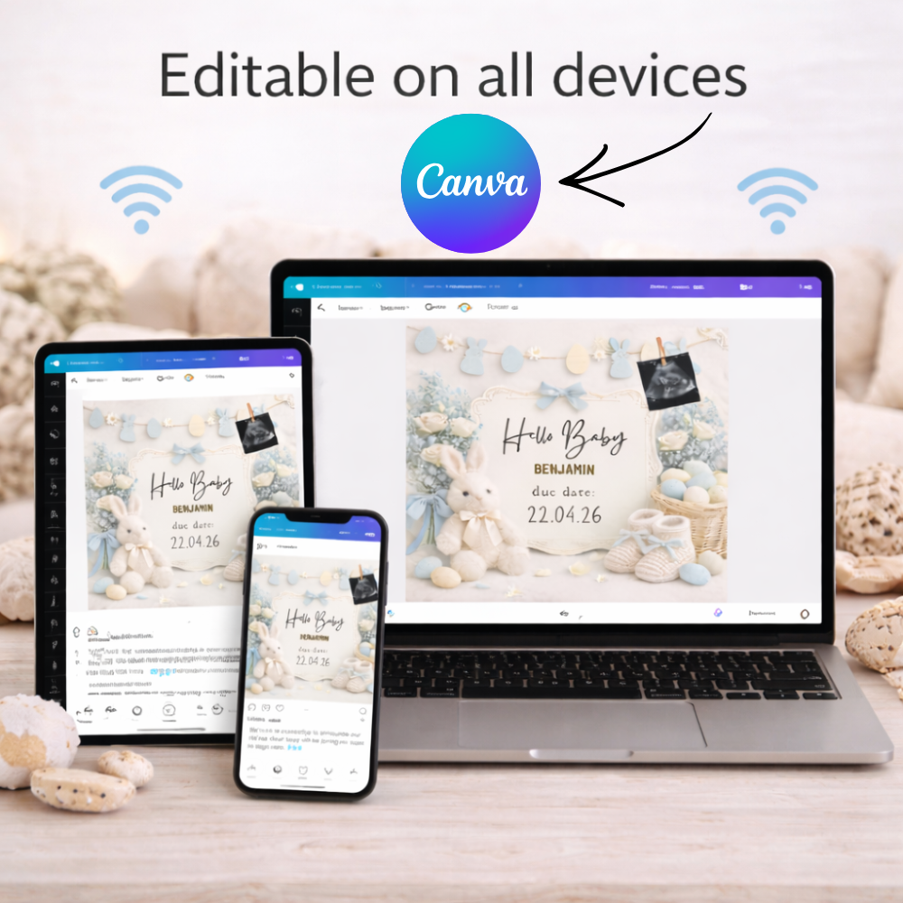 This is a **fully editable digital template**, allowing you to personalize the baby name, due date, and details in just minutes—no design skills required.