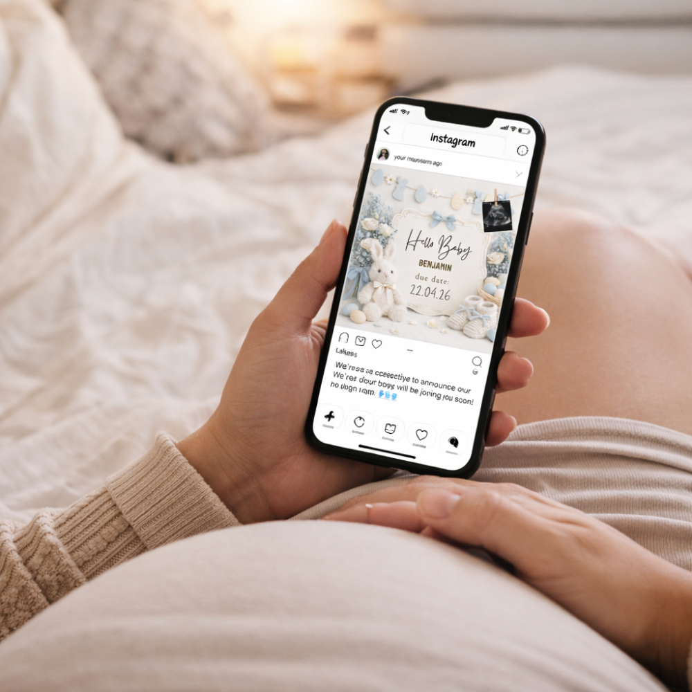 Celebrate your pregnancy with this **elegant Easter baby announcement template**, designed with soft pastel tones, bunny accents, florals, and a cozy spring aesthetic. Perfect for pregnancy reveals, social media announcements, or printable keepsakes.