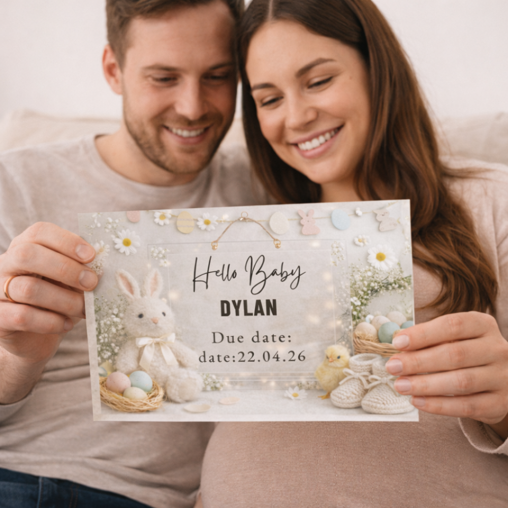 Celebrate your pregnancy with this **beautifully designed editable baby announcement template**, perfect for modern parents who want a timeless and gender-neutral reveal.